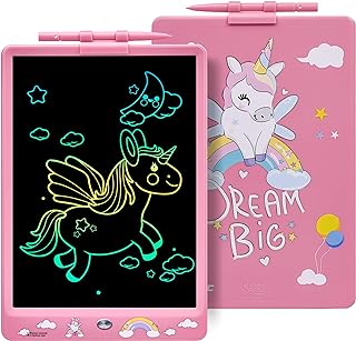 DYNASONIC (DYNA-PM Unicorno Tablet LCD a Colori da 10 Pollici per Bambini Lavagna Magnetica. Giocattolo educativo. Regalo per Bambini. Lavagna per Bambini 2 3 4 5 6 7 8 9 Anni