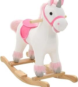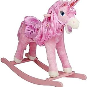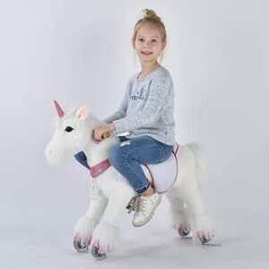 UFREE Horse Miglior Regalo di Compleanno. Action Pony Toy. Cavallo a Dondolo. Medium 93 cm per Bambini da 4 Anni a 9 Anni, Sorprendente Sorpresa di Compleanno. Unicorno con Corno Rosa