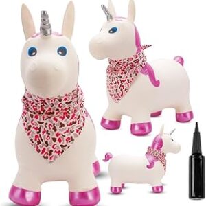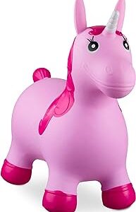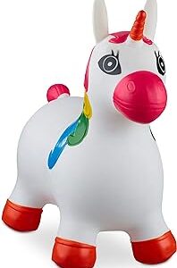 Sun Baby Animale gonfiabile che salta, giocattolo di 1 anno, saltarello per bambini, design ergonomico, cavallo giocattolo, pompa manuale inclusa (Unicorno bianco con corno glitterato)